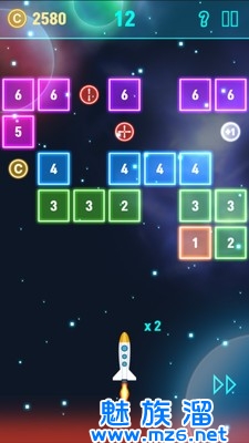 向后拉动蓄力,松手发射,同反弹来消除更多的方块获得更多的积分;