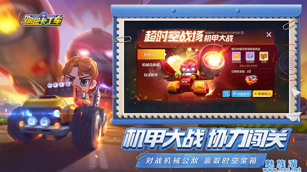 - 超时空战场-机甲大战:红色迪斯欧德袭击繁荣山丘,赛车手们快来保卫家园,战胜邪恶的红色迪斯欧德吧!更有丰富的限量奖励与史诗级赛车等你获取!超时空战场-机甲大战于7月2日开启;