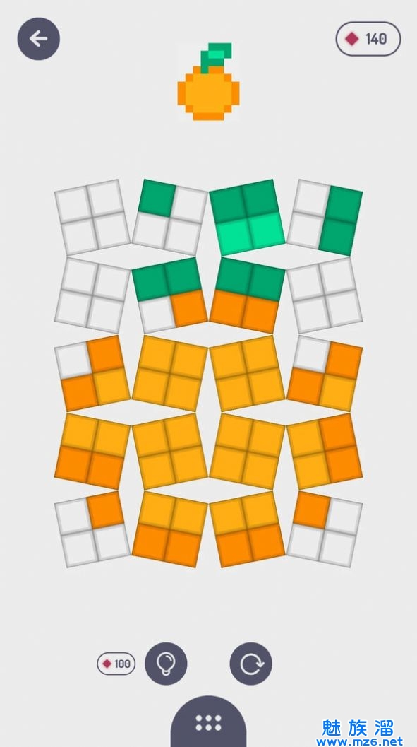 3、游戏目标是将贴片与给定的图稿匹配。点击钻石形碎片,让它们在自己的轴上单独旋转。