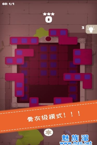 3.骨灰模式:每一个方块单独由不同颜色组成,需拼接成至方框形状/颜色一致。