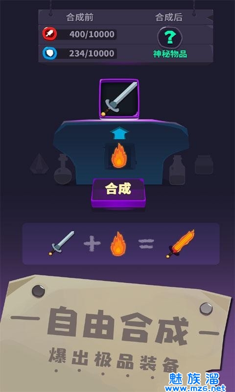 1、放置战斗的玩法让游戏看上去非常轻松,但其实恰恰香坊,玩家需要不断操作材料的合成来完成英雄人物的成长。