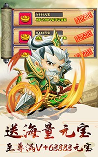 1、上线即送至尊满VIP、68888元宝及千万铜币奖励,各种VIP功能免费享受!