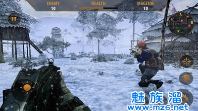 2.全部是雪地的世界,在这里有着不同的游戏武器可以让你选择。