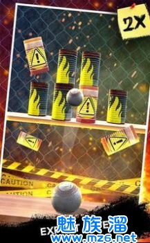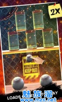 1、你可以将球扔到罐头和桶上敲击它们,但不要太用力或缓慢地投掷。