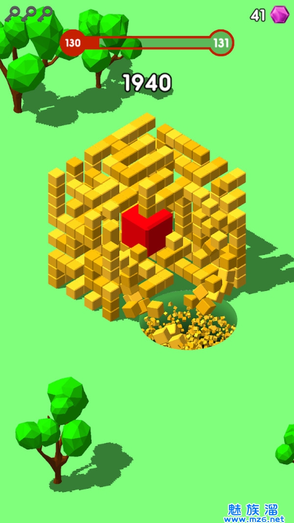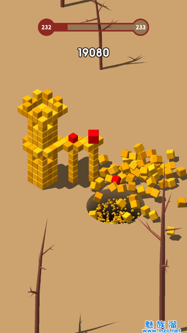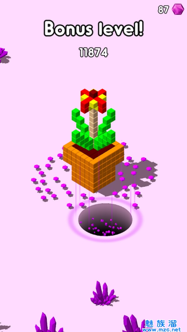 2、每一个关卡内都有无数块方块组成的图形,你利用黑洞将它一步步捣碎;
