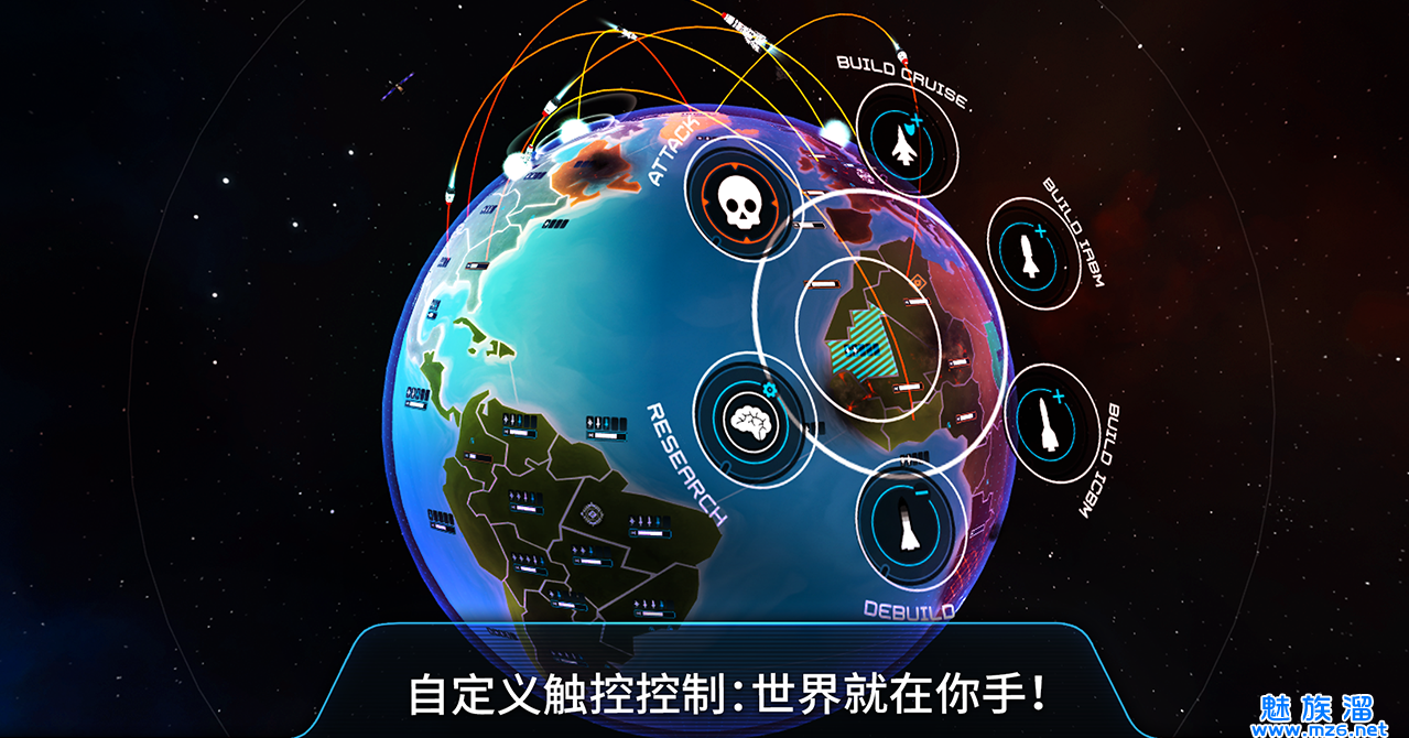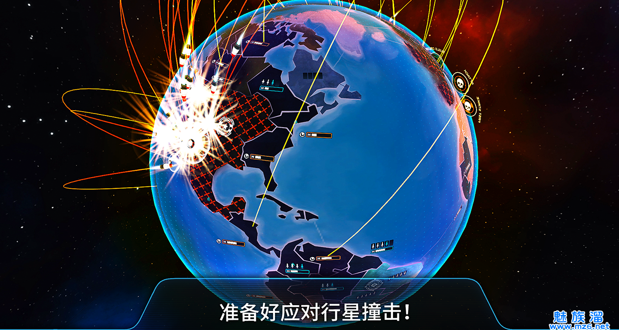4、控制世界 - 在三维地球上发射和防御核火箭。