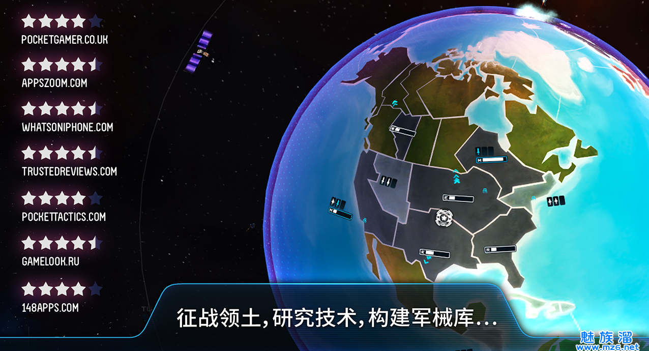 游戏画面十分具有科幻感,玩家以上帝视角俯视着地球,3D 视感清晰,整个画面并无多余的菜单和要素,一切的操作均在地球模型上进行。