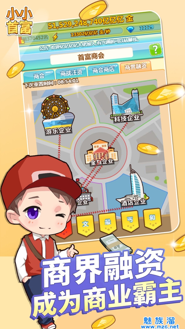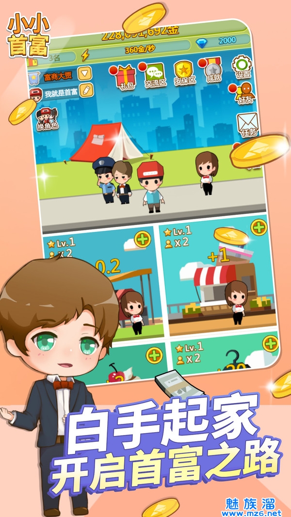 小小首富破解版是一款简单的放置经营游戏,在这款游戏之中玩家将会成为一名首富,在这里玩家还可以感受白手起家的乐趣,玩家在游戏之中将可以感受各种各样的人生,而且在这里玩家还可以过着挥金如土的日子,在这里玩家还可以不断的通过招募来获得更多对自己有用的人才,感兴趣的小伙伴赶紧下载试试吧。