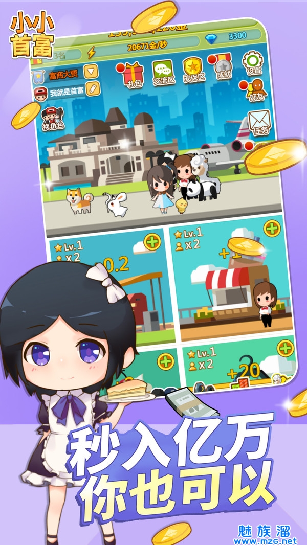 3、作为首富怎么能缺少萌宠和豪宅呢,数量众多的萌宠豪宅等待主人的召唤哦