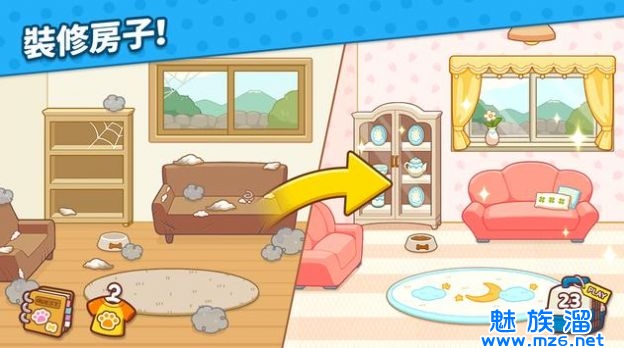 1、帮助作家修理老房子,变成一间甜蜜的家,帮宠物穿上可爱又漂亮的服装!
