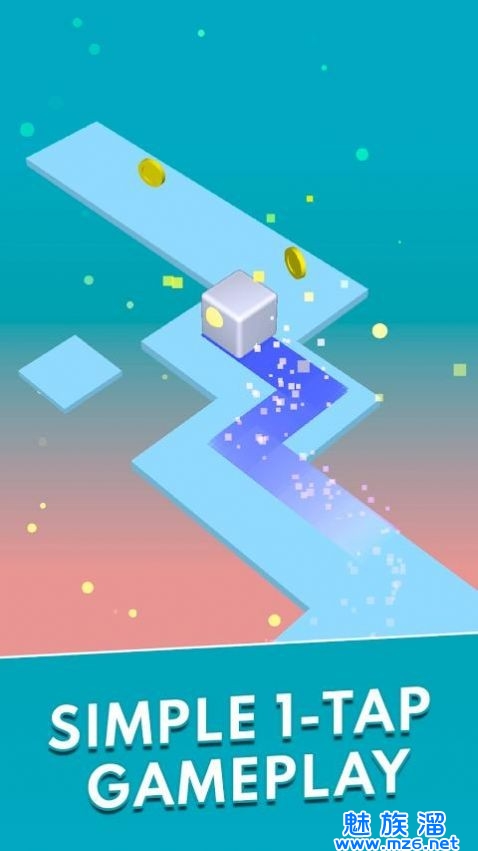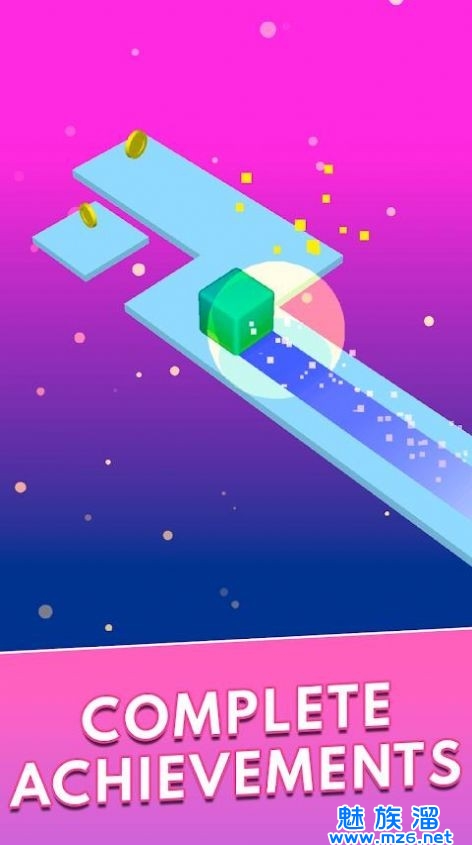 1、在遇到弯道的时候,使用手指及时滑动屏幕就能让方块转弯进入下一弯道。