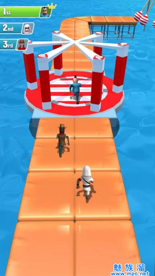 1、控制着小人在场景中不断的冲刺,你要避开一些陷阱机关的同时,也要比其他的人群先到达终点才行。