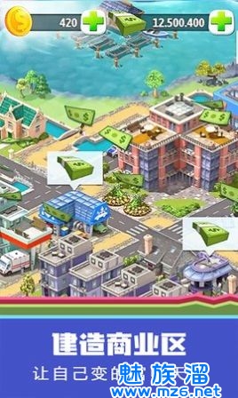 从一个小村庄开始,收集商业利润,解锁新的建筑,升级为城镇——县城——城市,最终发展成一个拥有千万人口的超级都市。