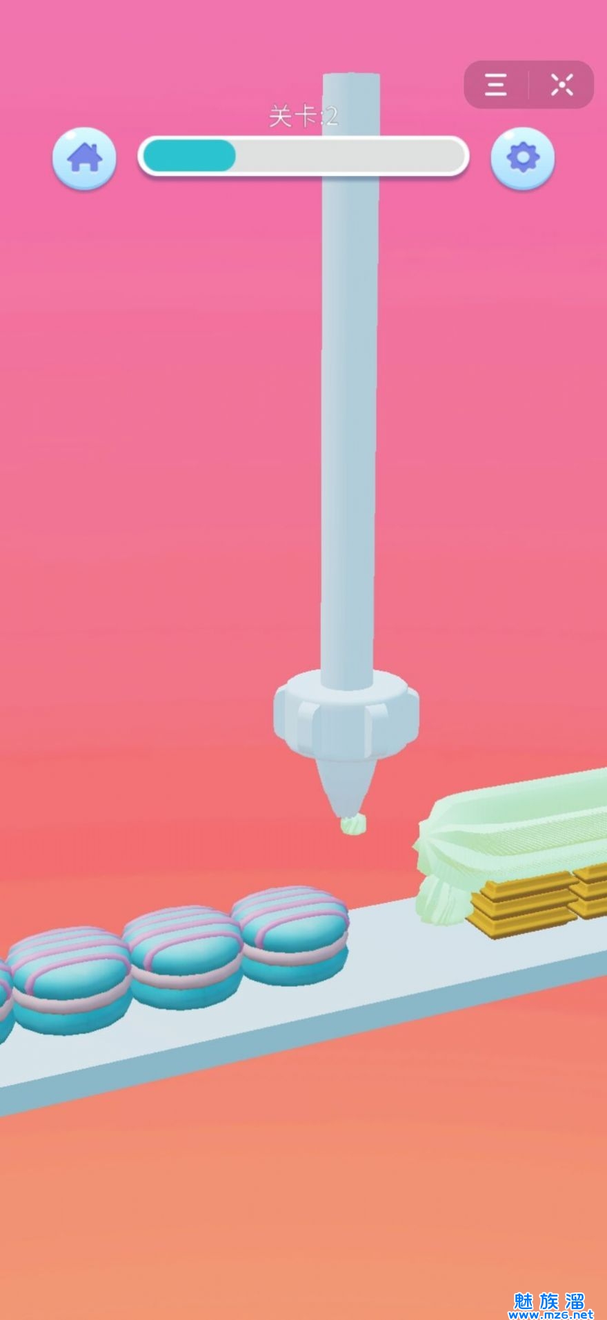 2、有很多蛋糕在向着你移动来,你要看准时机给他们喷上奶油;