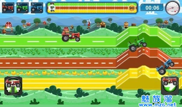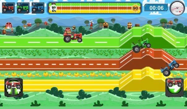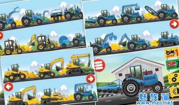 1、这里有着众多场景关卡,玩家通过收集拖拉机的部件来进行闯关;