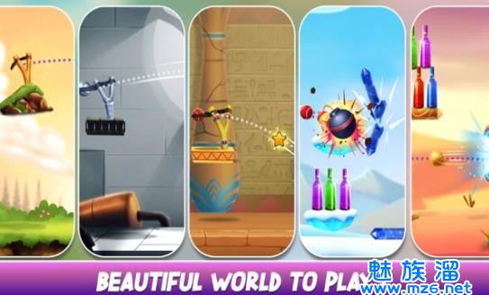 1.丰富的游戏关卡设计,你所要做的就是把球滚下来,然后用弹射把瓶子砸下来。