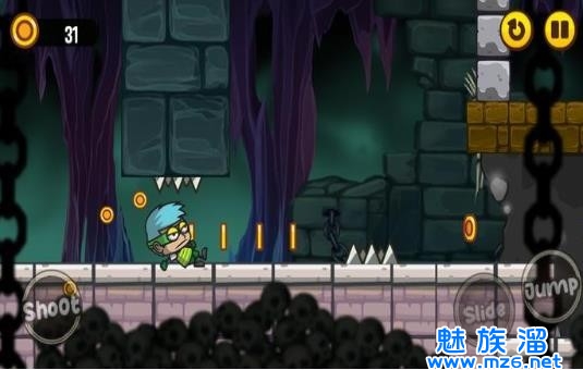 杰克恐怖冒险是一款横版风格的动作闯关类游戏,游戏中你要控制着杰克来进行冒险,横版跳跃以及射击模式的结合,在阴森恐怖的森林以及古堡中进行穿梭,从而让自己能够闯过一道道的难关,顺利的去解救出被困在其中的同伴们,游戏的玩法十分的简单,快来下载体验吧!