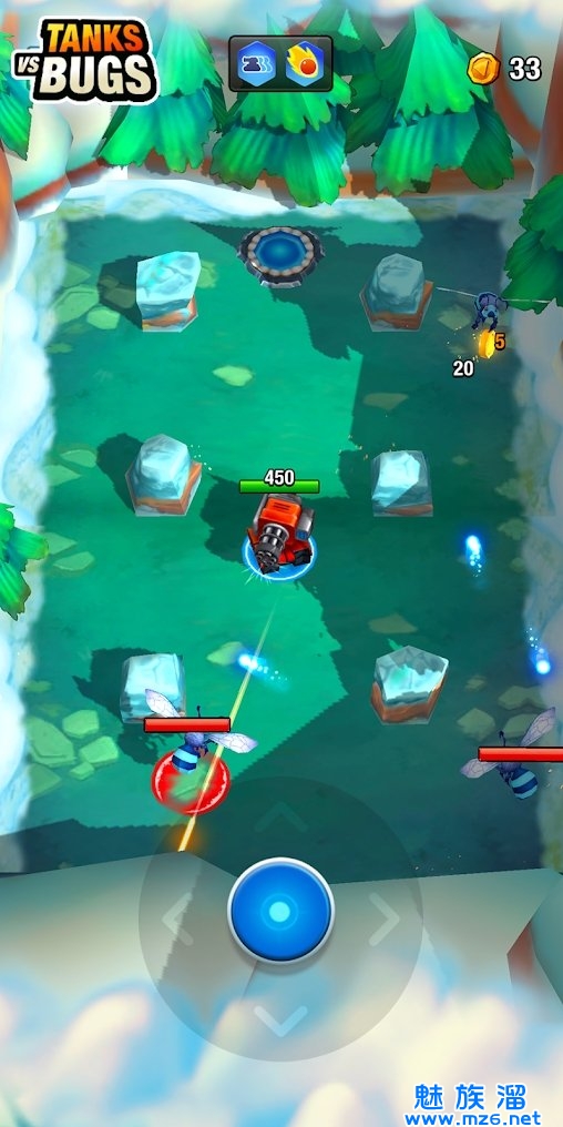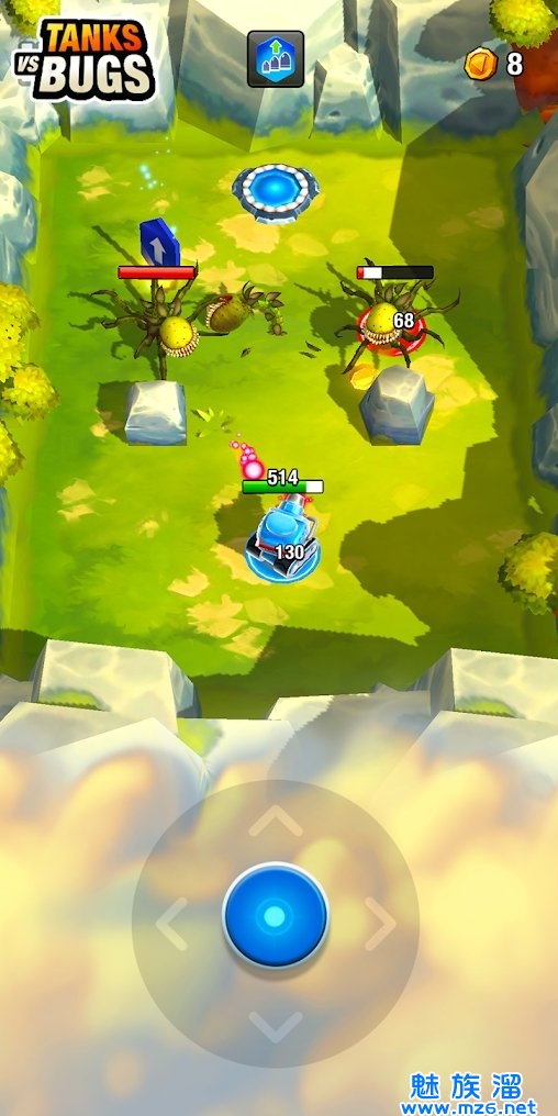2、不断的击败虫子,获得无尽的金币,解锁更多的坦克,获得无限力量;