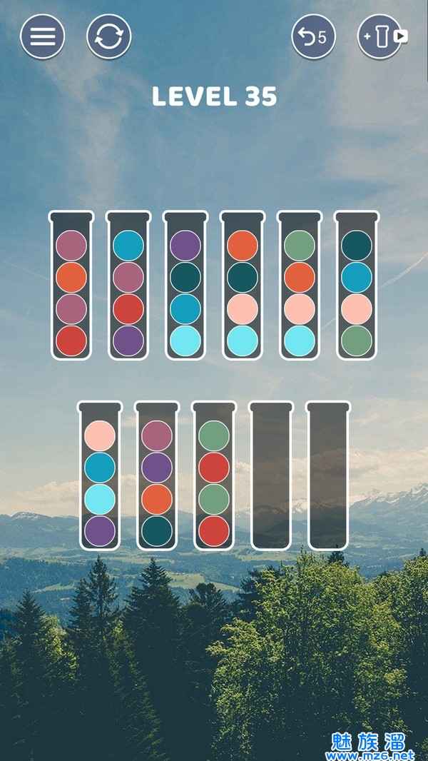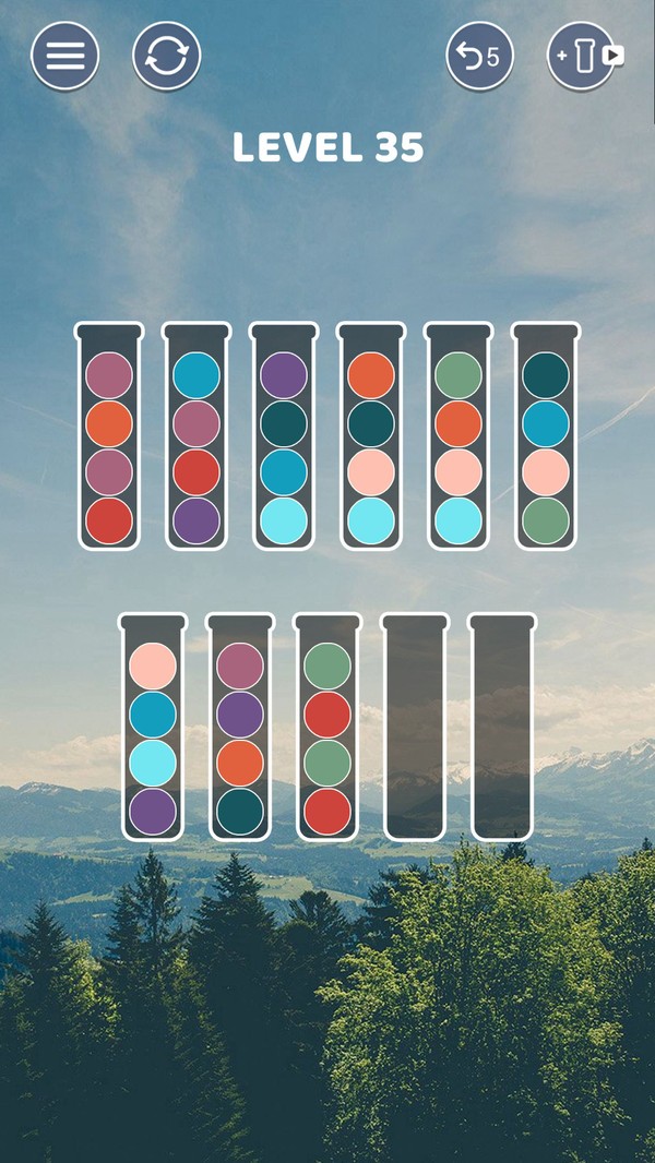屏幕简洁清新,操作方法非常简单。玩家将游戏中试管中的所有球分类。