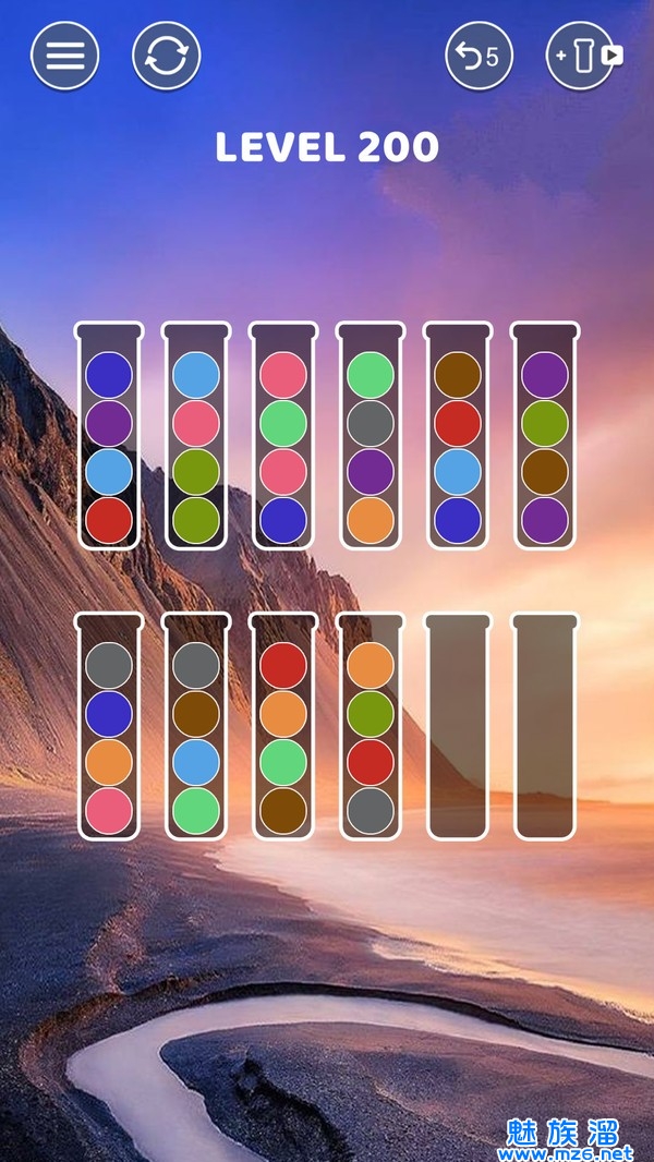 只需在同一试管中保持相同的颜色即可。难度和挑战逐渐增加。