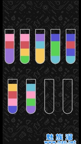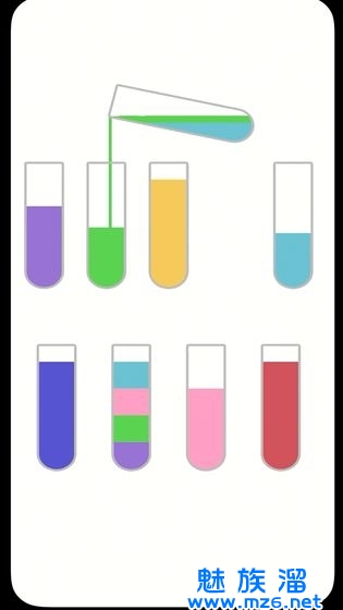 3、当你把当前关卡所有的液体分类好后即可顺利通关,完成任务。
