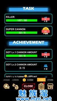 1、在这里你可以解锁不同造型和特殊属性的大炮,装备更好的大炮完成你的挑战;