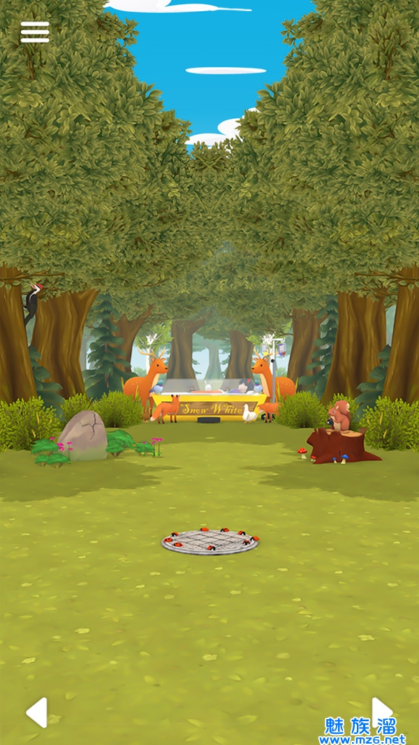 3、熟悉的童话故事,假装白雪公主去冒险,独自生活在森林有打败女巫的方法。