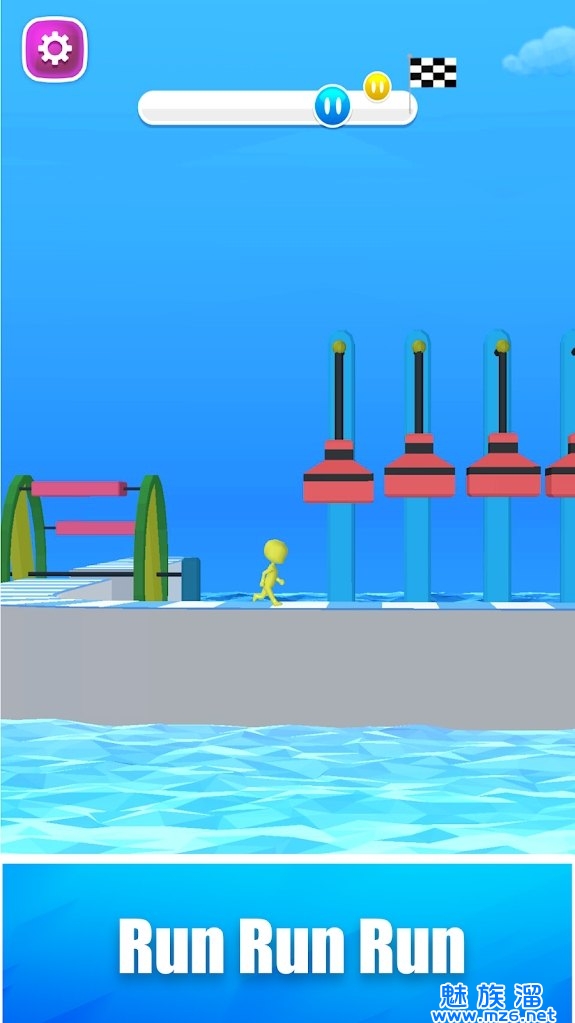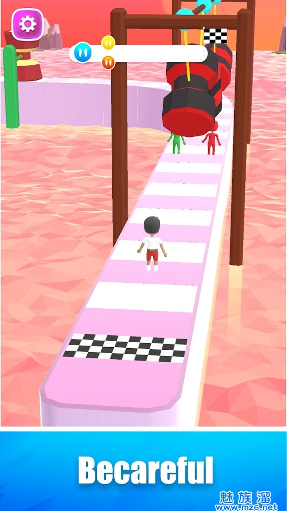 3、操作你的卡通小人灵活的躲避各种障碍,让它成功安全抵达终点高台。