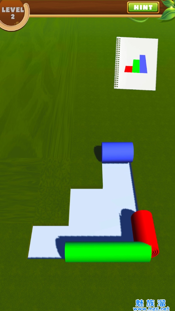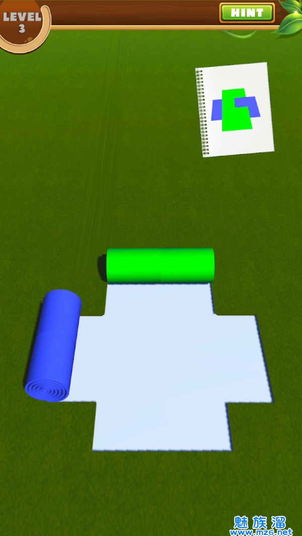 1、玩法易于上手且非常复杂,点击卷动的图层将其摊开,即可掩盖对应的区域;