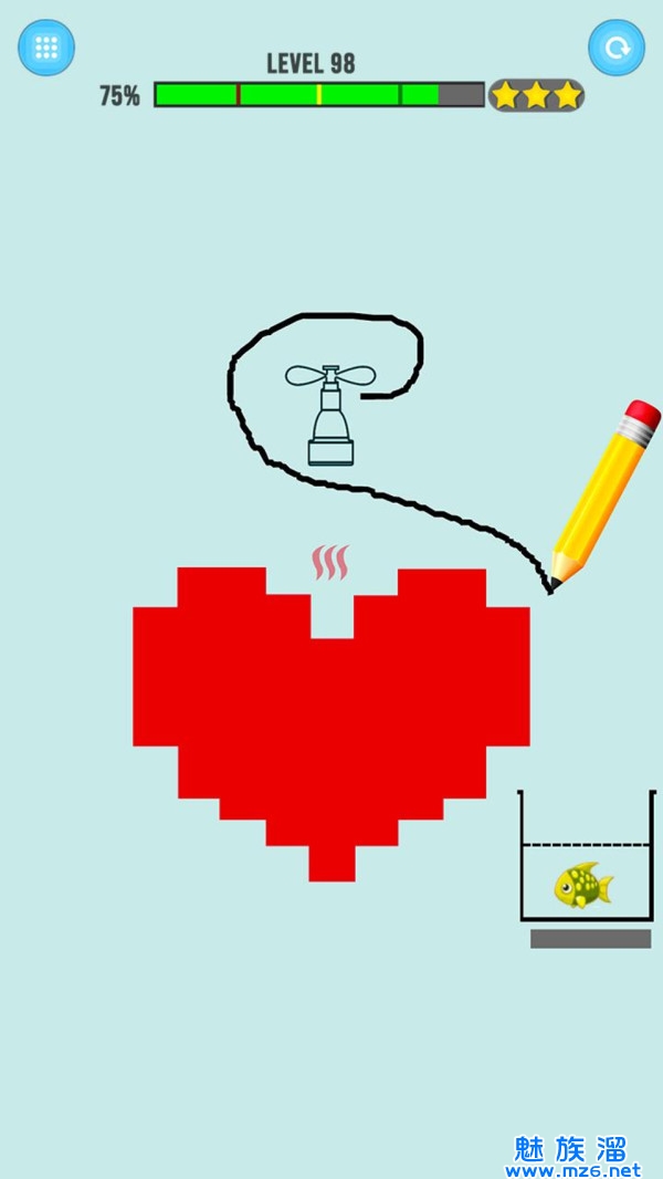超级简单的操作方式,一只手操作就行了,滑动屏幕控制笔画出不同的线条,成功就行;