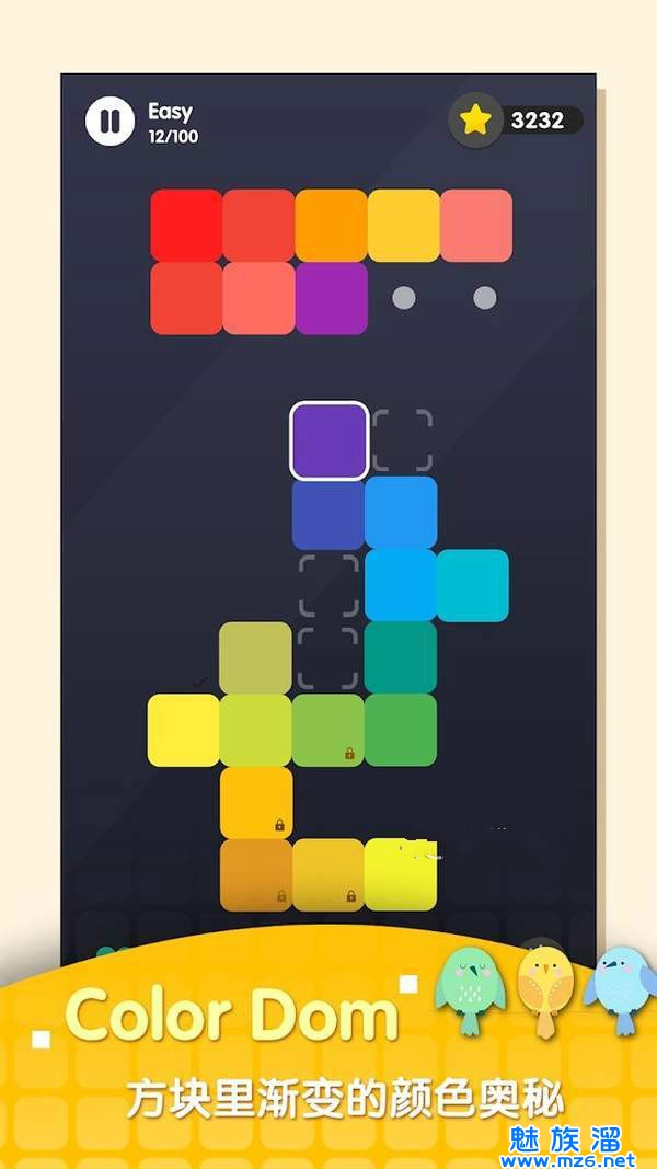 方块里渐变的颜色奥秘让人着迷,把方块按照色彩的渐变排列组合,尽享闯关乐趣。