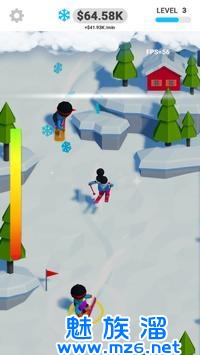 1、单纯的进行放置即可收获金钱,无聊的时候还可以看看滑雪者们的反应。