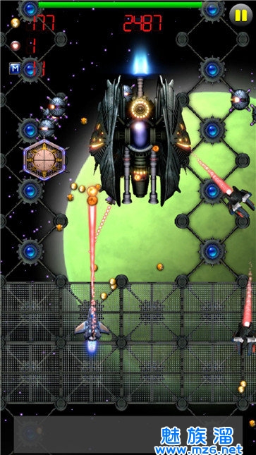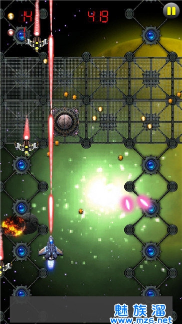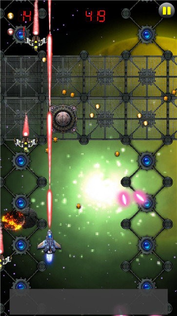 游戏的战斗节奏轻松随意,你只需要用手指控制你的飞船,飞行中尽量避开那些危险的障碍物,小心被它们破坏。