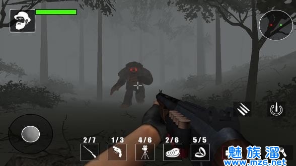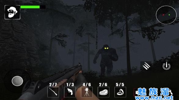 1.独特的冒险游戏设置,可以在森林中冒险,寻找大脚怪。