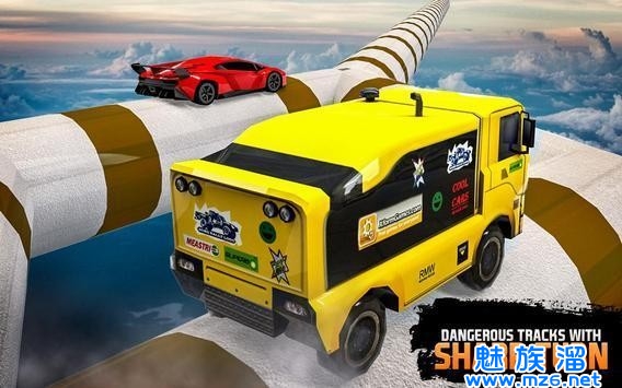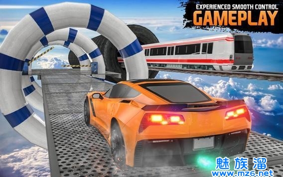 玩家可以驾驶酷炫的卡通跑车,在精心设计的3D空中跑道上奔驰。