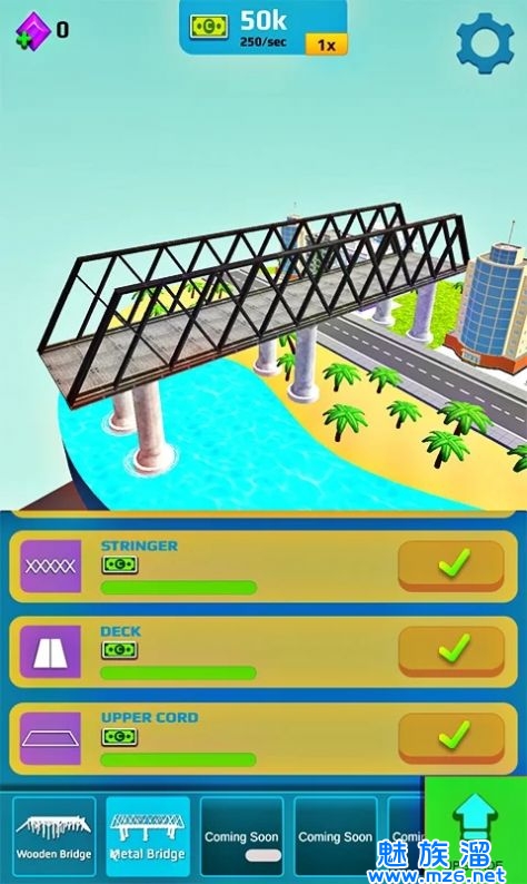 空闲桥梁设计游戏是一款非常清新的桥梁建筑模拟游戏,在这款游戏中玩家可以尝试搭建各种各样不同的桥,在这款游戏中玩家可以在不同的城市中搭建桥梁,游戏的玩法非常轻松丰富,通过关卡就可以获得皮肤奖励,在游戏中打造一座自己喜欢的桥,成为最棒的桥梁设计师吧。