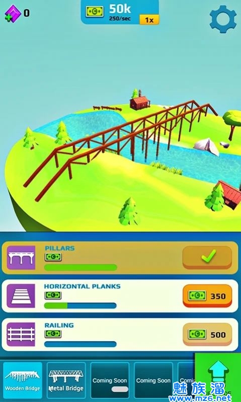 3、除普通模式外,游戏还有简单模式,让您轻松游戏并专注于创意和即兴创作。遇到难题时,您还可以使用游戏中的提示系统。这里有30个关卡以及隐藏和奖励的桥梁,肯定能让您爱不释手。