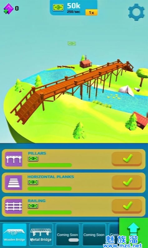 1.卡通风格游戏画面,各种趣味的桥梁等你建设,欢乐满满,挑战性十足。
