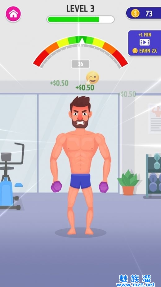 各种各样的工具你都可以使用,卡通的游戏界面,把你变成不一样的肌肉男