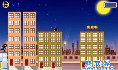 3、小偷逃逸非常有趣的游戏,让忍者跳跃前进,避免所有的陷阱,