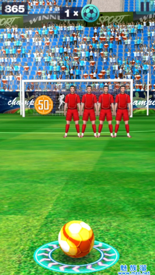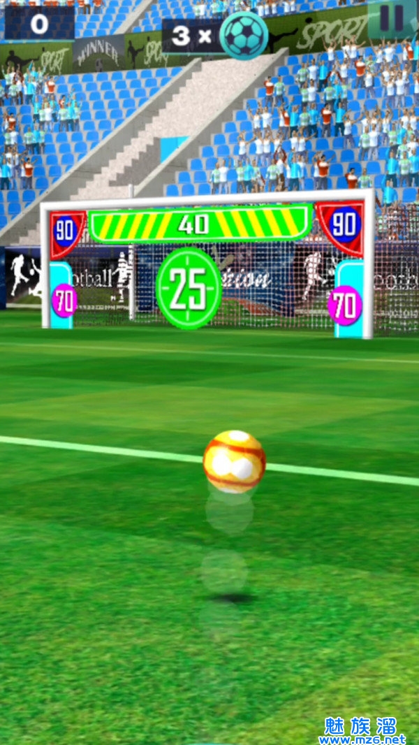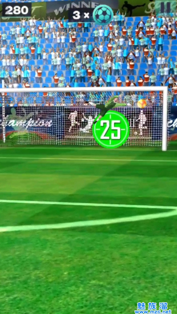 要拍摄一个壮观的目标,你需要在这场足球比赛中正好两次刷卡。第一个让球移动。您可以通过第一次轻弹控制拍摄的方向和高度。你滑动的速度越快,球的飞行速度越快。