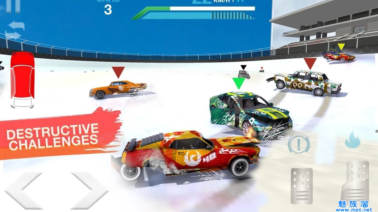 碰撞比赛游戏是一款以汽车为主题的游戏,游戏过程中你一定要将你自己的汽车控制到位,只有将你的汽车控制好了,你才有可能撞翻其它车辆顺利完成任务,这个过程中你一定要将你的车辆进行稳定而精确地控制才行,想要顺利的完成驾驶任务,你只能这么做,但是你必须要熟练的控制好你的车辆才行,不要被别人的车给撞翻了哟,当心一点总是好!
