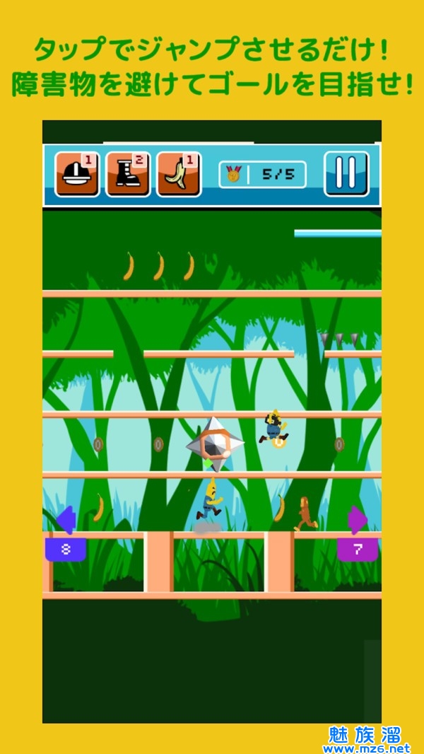 在收集香蕉和道具的同时,避开危险障碍向终点进发吧!