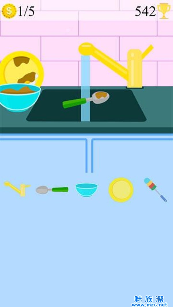 游戏中你需要进行洗碗的操作,让碗可以达到百分百的干净,这样才能够获得更高的评价,玩家们可以轻松的去享受刷碗的过程,十分的有趣哟。