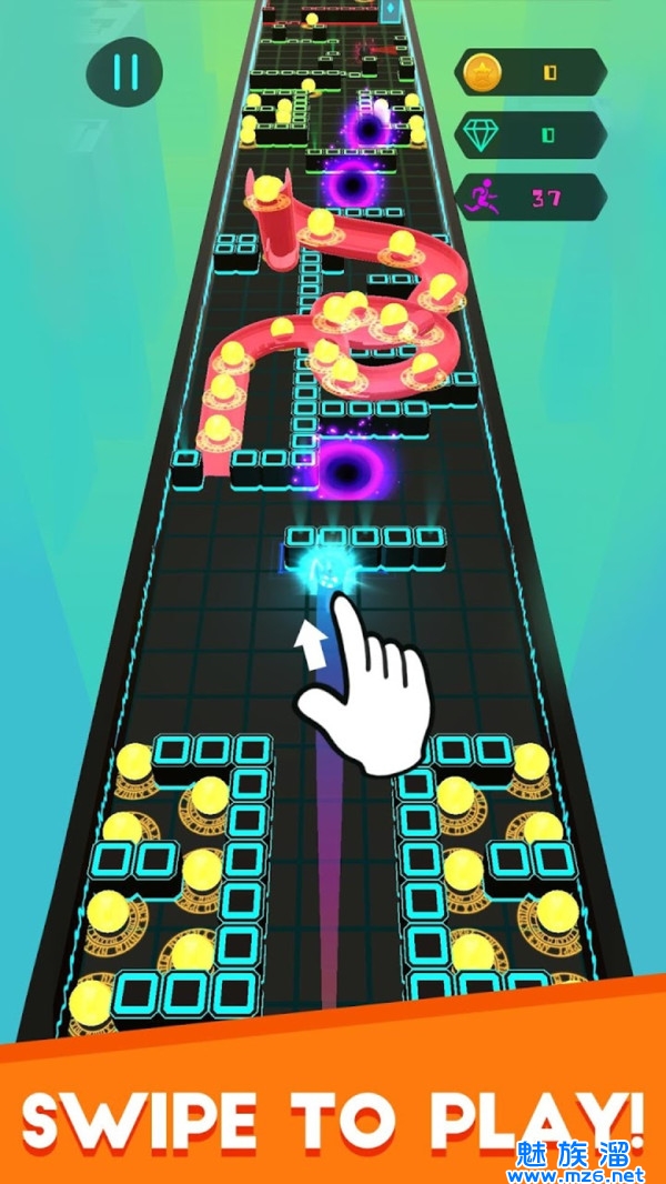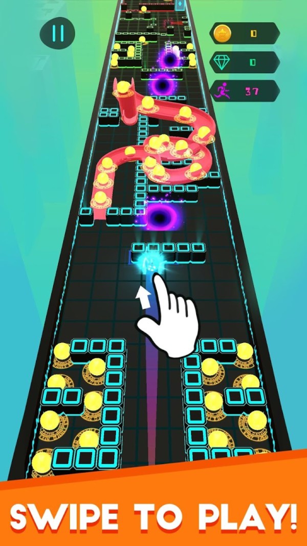 2、你需要控制小球在无尽的关卡上不断的向前滚动,避开所有的障碍物;
