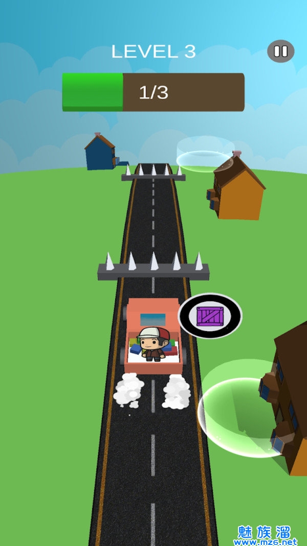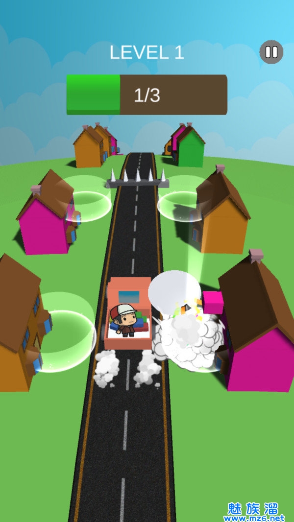 1、沿途会有各种房屋,观察快递的颜色,将它们投掷相同颜色的屋子;