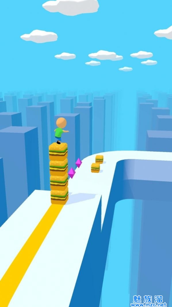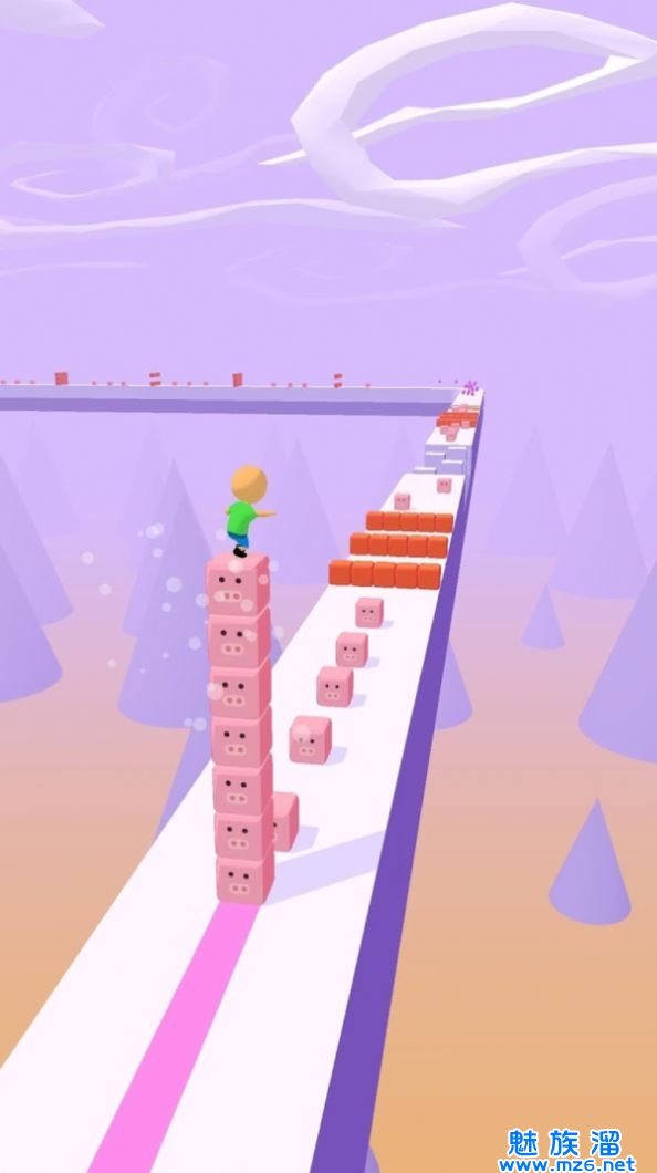 1、在游戏里面需要控制着小人,在路上收集更多的方块,更快的通过障碍物;