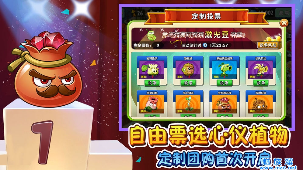 团购活动新玩法来袭,想要哪个植物,你来决定!在团购活动开启前将会举办限时投票活动,角逐大家都最期待的心仪植物,让它出现在双十一团购的主会场中。参与投票更能获得折扣券、潘妮的秘宝抽奖券、植物碎片等稀有奖品哦~