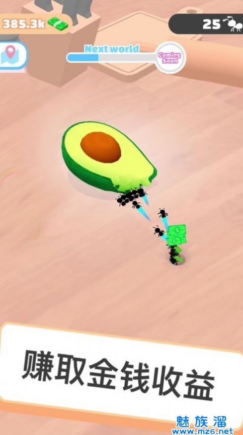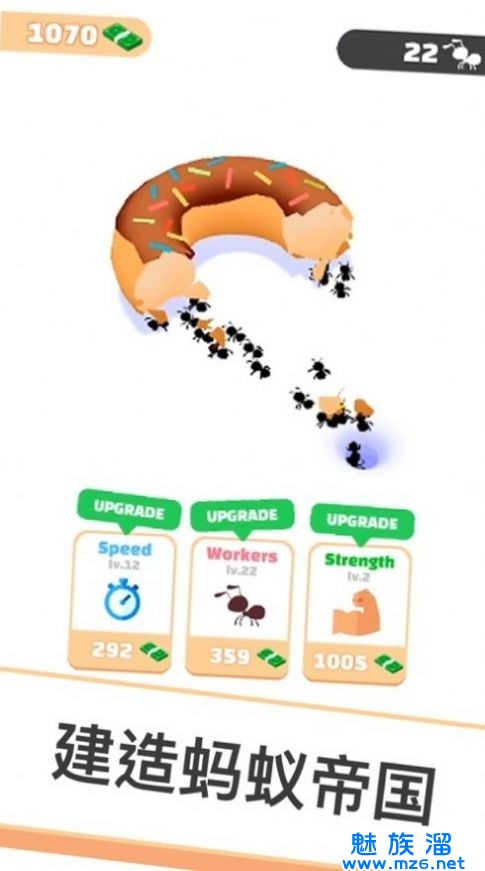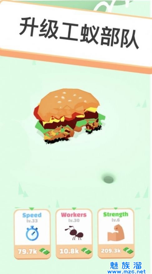 玩个蚂蚁游戏中的主角是一只蚂蚁,玩家可以提高技能以增加蚂蚁数量,他们还可以利用金钱来提高蚂蚁的爬行速度和强度,可以更快地将食物运回,无论是鸡腿还是面包和糕点!
