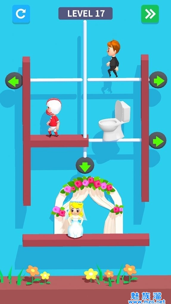 规划出一条通往新娘的安全路线,同时注意避开路途中的劫匪。关卡设定有一定的难度,需要玩家充分开动脑筋破解难题,丰富的趣味关卡等待玩家前来挑战。